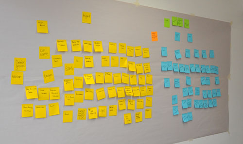 The process of creating the map was quite interesting and it was very important to trust in the process (it got messy!). Having our clients in the room to do this activity with us was invaluable. If we did it again I would make sure there were representatives from all business units so as not to make too great an assumption about their area.