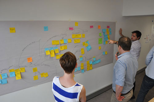 We used the map to guide our concept generation by attaching “How might we…” statements to each problem area. It was good to have the map up on the wall as it made the previously intangible organisational structure more concrete. For me this showed the value of the activity as the knowledge no longer existed solely in our client’s heads. People could point to a physical place where an idea or problem ‘resided’ and then we could all see how it linked to and impacted upon other areas.
