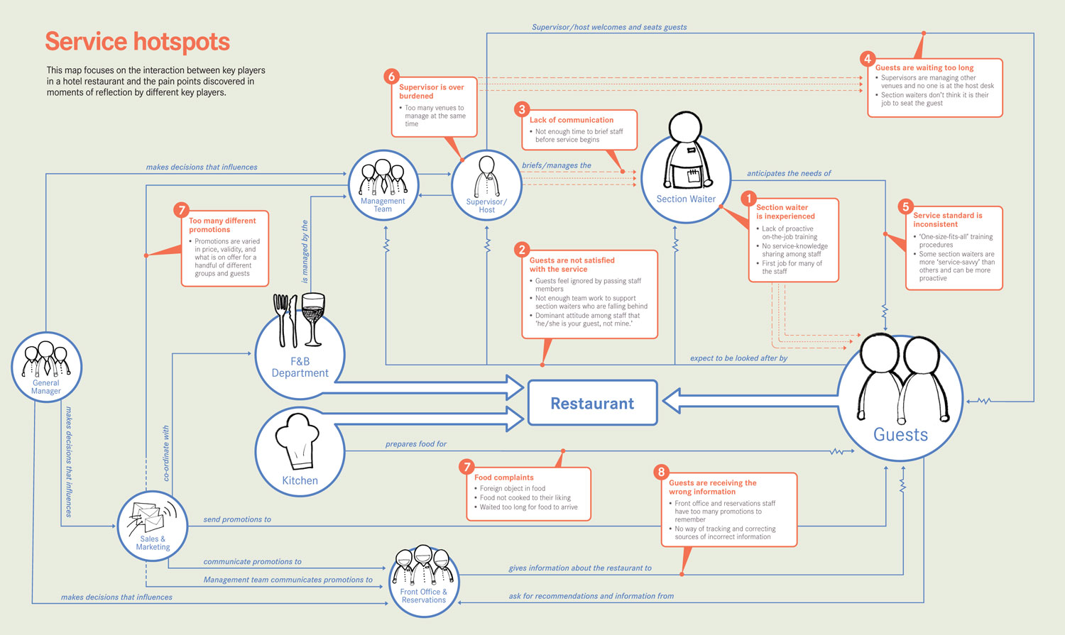Use a pen to draw links from one player to each related item and label each link with an action statement. eg. SALES STAFF provide product advice to their CLIENTS. Your client will be your friend here as they will have the greatest knowledge of internal process.